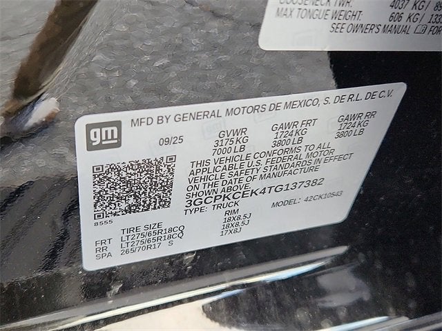 Not all customers qualify for all rebates. See dealer for complete details. Price includes: $1000 - GM Bonus Cash. Exp. 02/02/2026 $3000 - Chevrolet Consumer Cash Program. Exp. 02/02/2026 $500 - GM Military Cash Allowance Program. Exp. 01/04/2027 Recent Arrival! Silverado 1500 Custom Trail Boss, 4D Crew Cab, 2.7L I4 Turbocharged DOHC 16V LEV3-SULEV30 310hp, 8-Speed Automatic, 4WD, Black, Black Cloth, 10-Way Power Driver Seat w/Lumbar, 120-Volt Bed Mounted Power Outlet, 120-Volt Interior Power Outlet, 220 Amp Alternator, 3.42 Rear Axle Ratio, 3.5 Monochromatic Display Driver Info Center, 4-Wheel Disc Brakes, 4 Black Round Assist Steps (LPO), 40/20/40 Front Split-Bench Seat, 6 Speakers, 6-Speaker Audio System, ABS brakes, Air Conditioning, All-Weather Floor Liner (LPO) (AAK), Alloy wheels, AM/FM radio: SiriusXM, Apple CarPlay/Android Auto, Auto High-beam Headlights, Auto-Locking Rear Differential, Automatic Emergency Braking, Black Name Plates (LPO), Black Tailgate CHEVROLET Lettering (LPO), Bluetooth® For Phone, Brake assist, Chevytec Spray-On Black Bedliner, Cloth Rear Seat w/Storage Package, Cloth Seat Trim, Color-Keyed Carpeting Floor Covering, Compass, Custom Convenience Package, Dark Essentials Package (LPO), Deep-Tinted Glass, Delay-off headlights, Driver door bin, Driver vanity mirror, Dual front impact airbags, Dual front side impact airbags, Dual Rear USB Ports (Charge Only), Electric Rear-Window Defogger, Electronic Cruise Control, Electronic Stability Control, Emergency communication system: OnStar, EZ Lift Power Lock & Release Tailgate, Following Distance Indicator, Forward Collision Alert, Front anti-roll bar, Front Center Armrest w/Storage, Front License Plate Kit, Front Pedestrian Braking, Front reading lights, Front Rubberized Vinyl Floor Mats, Front wheel independent suspension, Fully automatic headlights, HD Rear Vision Camera, Heated door mirrors, Heavy-Duty Air Filter, Hill Descent Control, Hitch Guidance, Illuminated entry, IntelliBeam Automatic High Beam On/Off, Lane Keep Assist w/Lane Departure Warning, LED Cargo Area Lighting, Low tire pressure warning, Manual Tilt Wheel Steering Column, Occupant sensing airbag, OnStar Services Capable, Outside temperature display, Overhead airbag, Overhead console, Panic alarm, Passenger door bin, Passenger vanity mirror, Performance Red Recovery Hooks, Power door mirrors, Power driver seat, Power Front Windows w/Driver Express Up/Down, Power Front Windows w/Passenger Express Down, Power Rear Windows w/Express Down, Power steering, Power windows, Preferred Equipment Group 2CX, Premium audio system: Chevrolet Infotainment 3, Radio data system, Radio: Chevrolet Infotainment 3 System, Rear 60/40 Folding Bench Seat (Folds Up), Rear reading lights, Rear Rubberized-Vinyl Floor Mats, Rear step bumper, Rear Wheelhouse Liners, Rear window defroster, Remote Keyless Entry, Remote keyless entry, Remote Vehicle Starter System, Security system, Single Outlet Exhaust, SiriusXM Trial Subscription, Speed control, Speed-sensing steering, Split folding rear seat, Standard Tailgate, Suspension Package, Tachometer, Teen Driver, Theft Deterrent System (Unauthorized Entry), Tilt steering wheel, Tire Pressure Monitoring System, Traction control, Trailering Package, Trip computer, Underseat Storage (LPO), Variably intermittent wipers, Voltmeter, Wheels: 18 x 8.5 Black Painted Aluminum, Wi-Fi Hot Spot Capable.