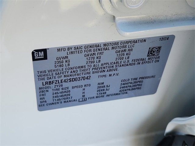 - Tires, P245/45R20 all-season